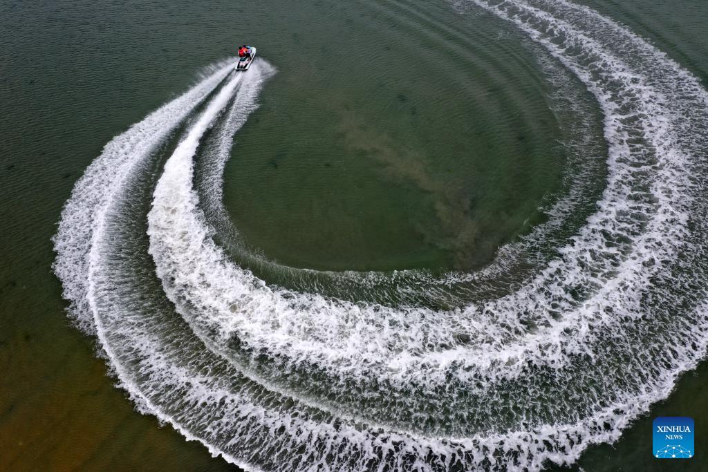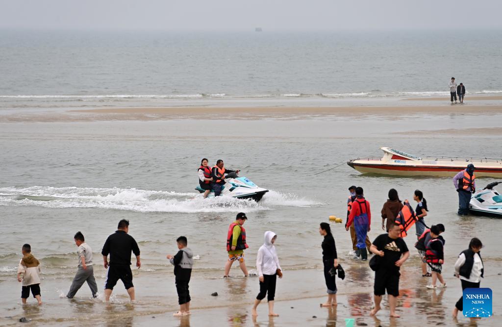 Tourists enjoy water activities in Beihai, China's Guangxi