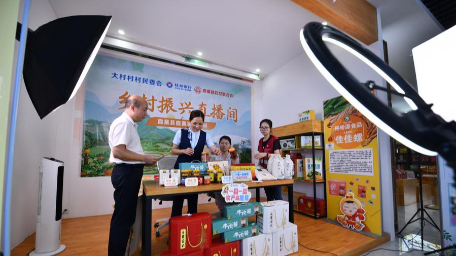 Residents prepare for a live streaming program to sell local products in Dacun village of Luzhai county, Liuzhou city, South China's Guangxi Zhuang autonomous region, June 14, 2023. (File photo: Xinhua)