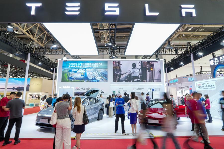 People visit the booth of TESLA at the Smart Vehicle Chain area of the third China International Supply Chain Expo (CISCE) in Beijing, capital of China, July 19, 2025. (Photo: Xinhua)