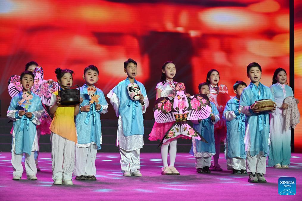 Children perform poetry recitation at a music hall in Qinyang, central China's Henan Province, on Feb. 8, 2026. Various extracurricular activities are available for students across China during the winter vacation. (Photo by Yang Fan/Xinhua)