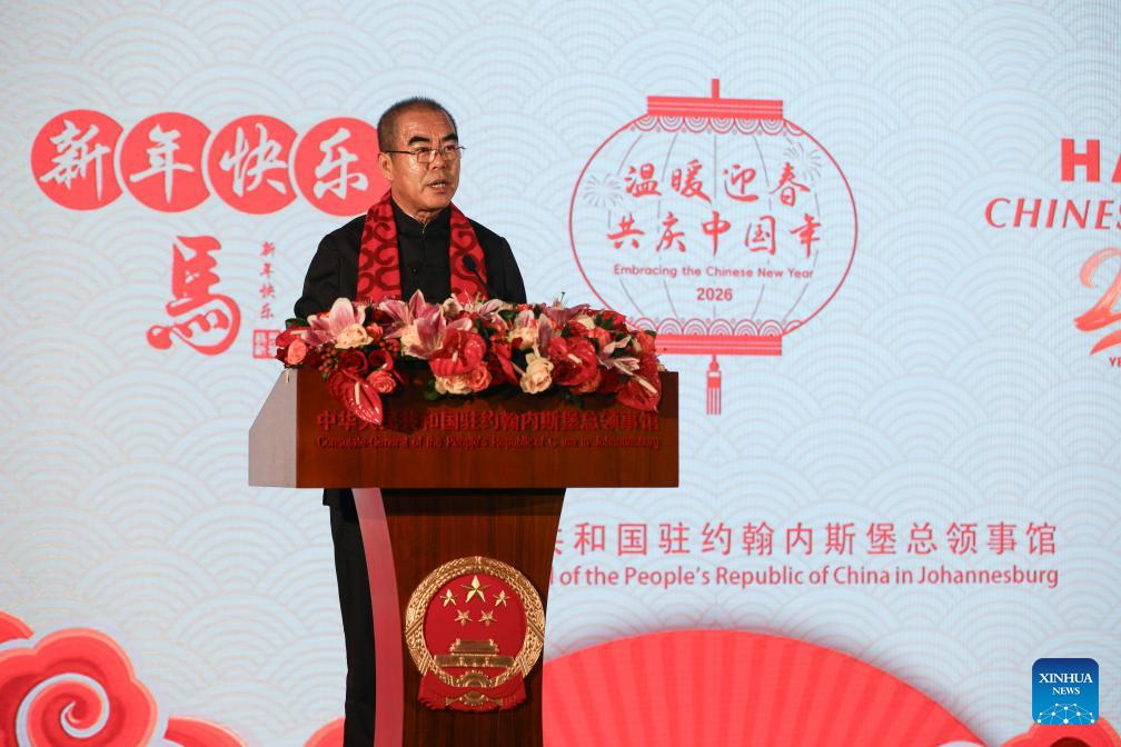 Chinese Consul General in Johannesburg Pan Qingjiang addresses a reception to celebrate the upcoming Chinese New Year in Johannesburg, South Africa, Feb. 9, 2026. (Photo: Xinhua)