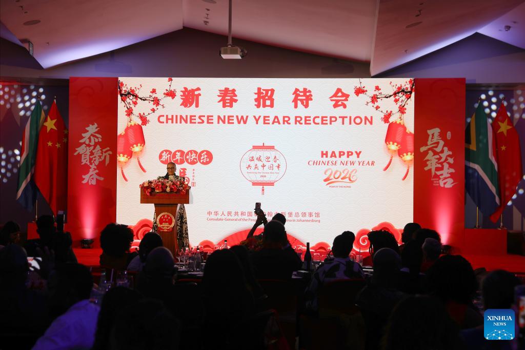 JOHANNESBURG, Feb. 10 (Xinhua) -- The Chinese Consulate General in Johannesburg hosted a reception Monday to celebrate the upcoming Chinese New Year of Horse, which falls on Feb. 17.