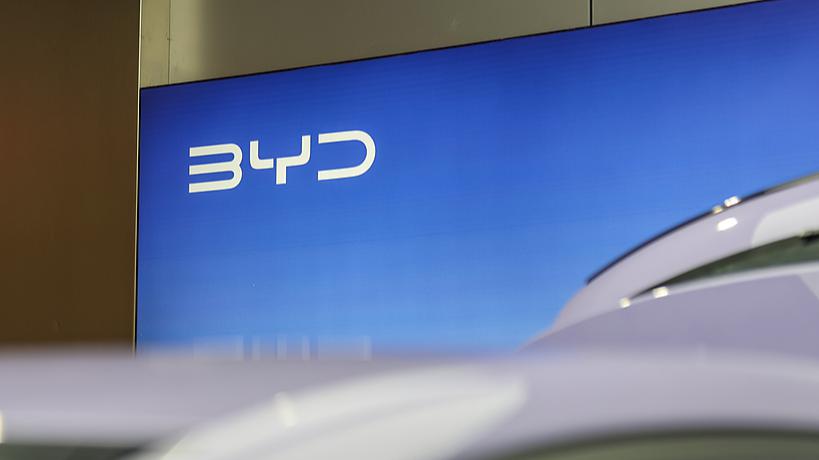 A BYD logo is seen in a BYD flagship store, Zhengzhou, central China's Henan Province, February 7, 2026. (Photo: VCG)
