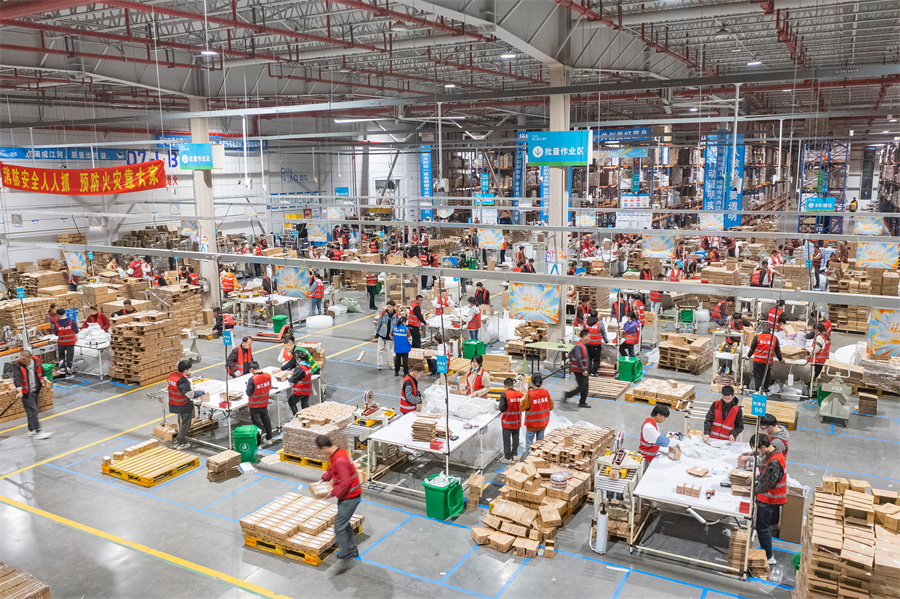 Staff members work at Yiwu Comprehensive Bonded Zone in Yiwu, Zhejiang province, on Nov 12, 2023. (Photo: Xinhua)