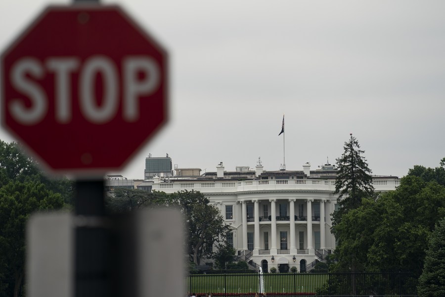 Photo taken on June 22, 2022 shows the White House and a stop sign in Washington, D.C., the United States. (File photo: Xinhua)