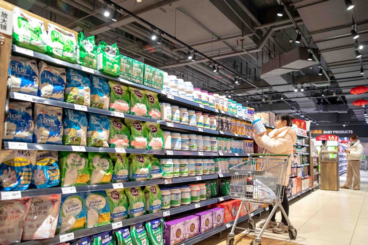 A consumer browses infant formula at a supermarket in Shanghai in January, 2025. (File photo: China Daily)