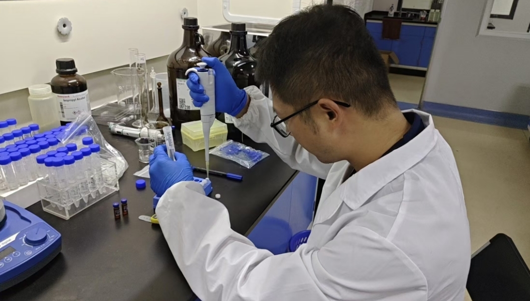 A staff member of a laboratory of the Xiamen municipal environmental monitoring station conducts an experiment on emerging pollutants. (Photo provided by Xiamen municipal environmental monitoring station)