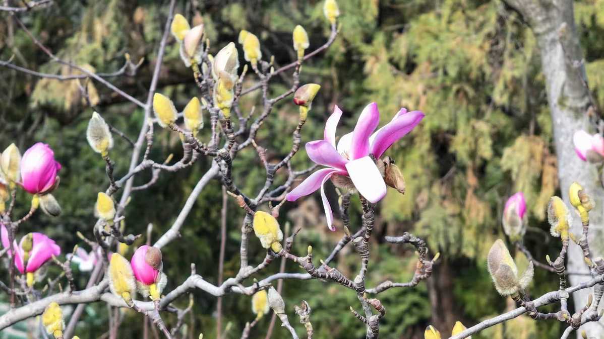 As Spring Festival approaches, more than 10 flowers have quietly bloomed on the world's only 400-year-old Magnolia soulangeana tree at the Wuhou Shrine in Mianxian county of Shaanxi province, more than 20 days earlier than in previous years.