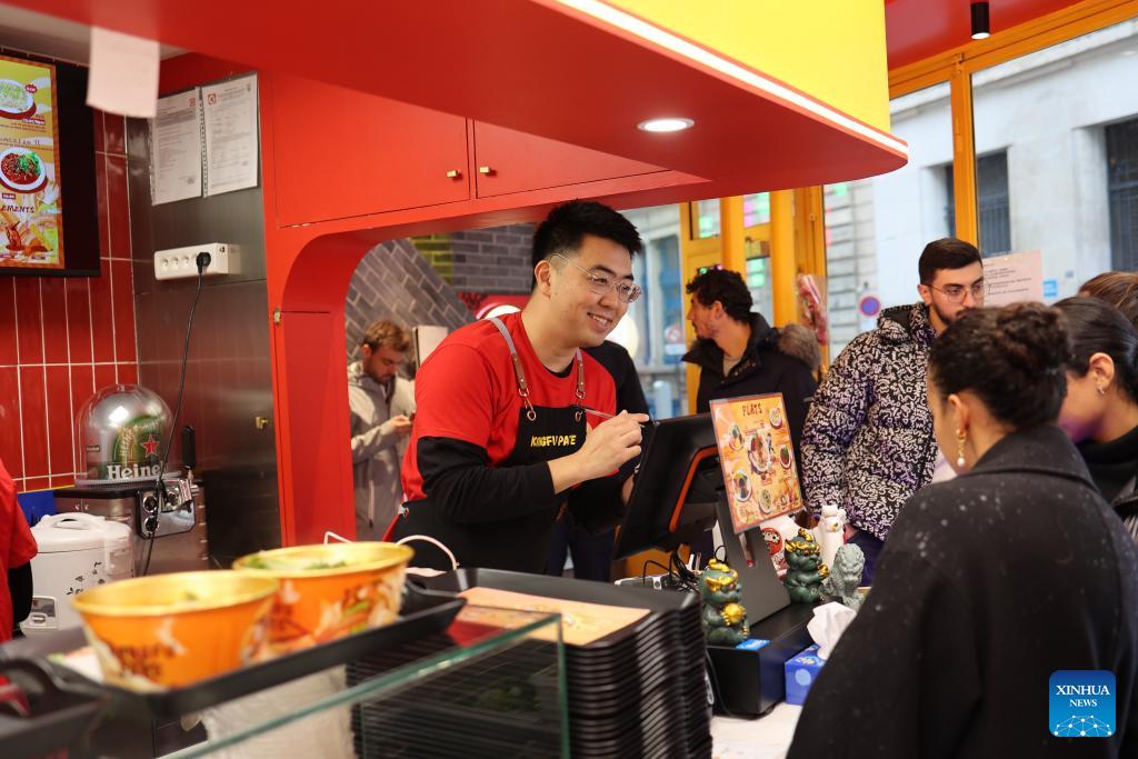"Good food knows no borders," Guo said, adding that he blends authentic traditional flavors with dishes that charm French diners. During local festive occasions, patrons are often seen sitting, squatting, or standing as they savor the noodles.