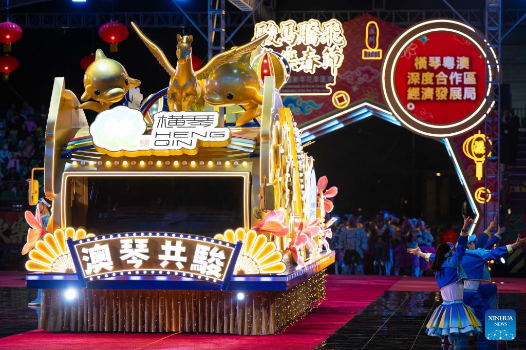 A float is pictured during a parade in celebration of the Chinese New Year in Macao, south China, Feb. 19, 2026. A parade was held Thursday by the Macao Government Tourism Office to celebrate the Chinese New Year, or the Spring Festival. (Xinhua/Cheong Kam Ka)