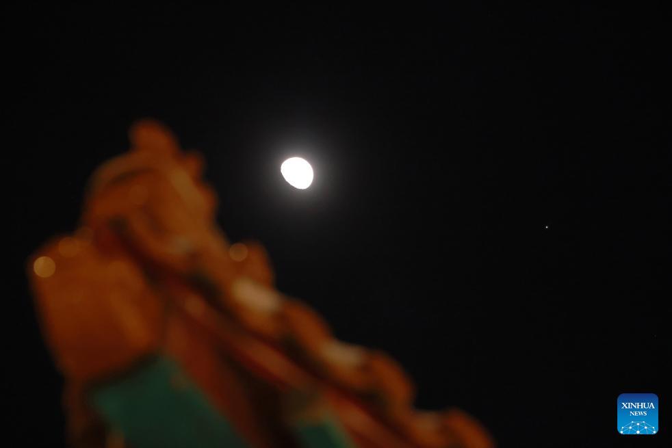 This photo taken on Feb. 27, 2026 shows the planet of Jupiter next to the moon in the sky over Qiqihar City, northeast China's Heilongjiang Province. (Photo by Wang Yonggang/Xinhua)