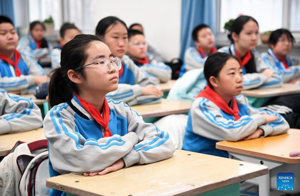 Students attend a class at a primary school on the first day of a new semester in Pinggu District of Beijing, capital of China, March 2, 2026. A new semester kicked off for primary and secondary schools in many parts of China on Monday. (Xinhua/Ren Chao)