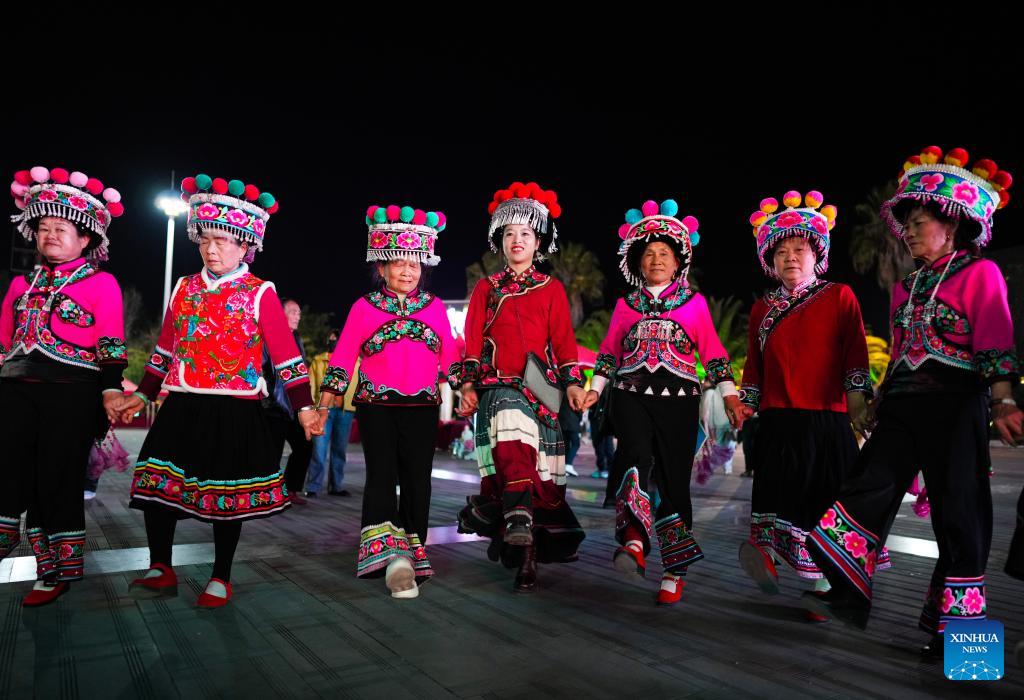 Jin Ruirui (C) dances with locals in Mouding County, southwest China's Yunnan Province, Feb. 9, 2026. (Xinhua/Chen Xinbo)