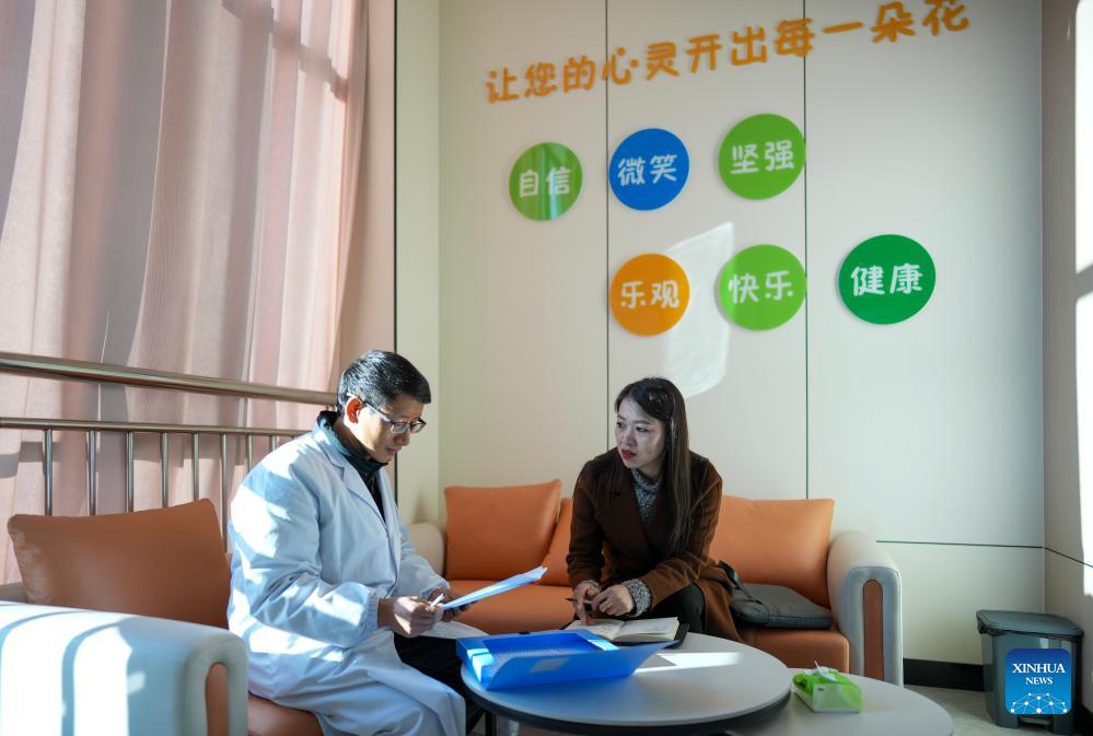 Jin Ruirui learns about youth mental health from a doctor at the People's Hospital of Mouding County, in Mouding County, southwest China's Yunnan Province, Feb. 10, 2026. (Xinhua/Chen Xinbo)
