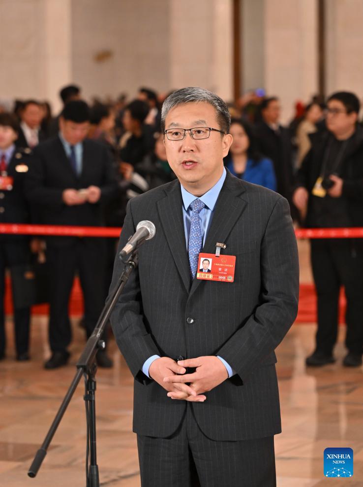 Dong Jin, a deputy to the 14th National People's Congress (NPC), attends a group interview ahead of the opening meeting of the fourth session of the 14th NPC at the Great Hall of the People in Beijing, capital of China, March 5, 2026. (Photo: Xinhua)