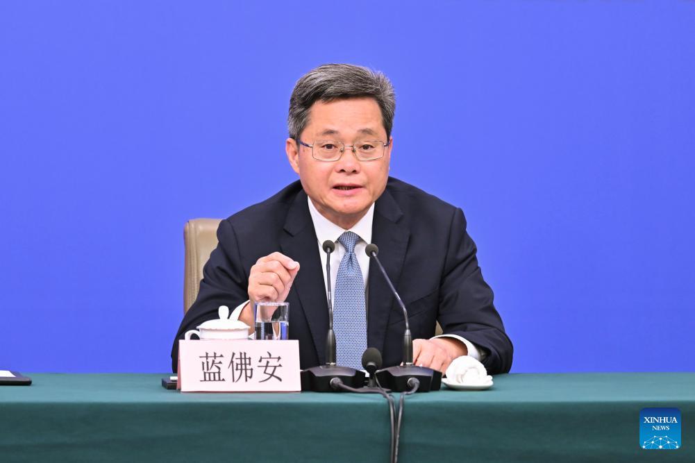 Chinese Finance Minister Lan Fo'an attends a press conference for the fourth session of the 14th National People's Congress (NPC) on economy in Beijing, capital of China, March 6, 2026. (Xinhua/Li Xin)