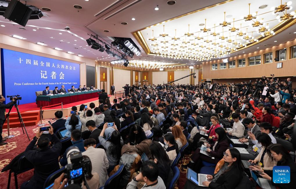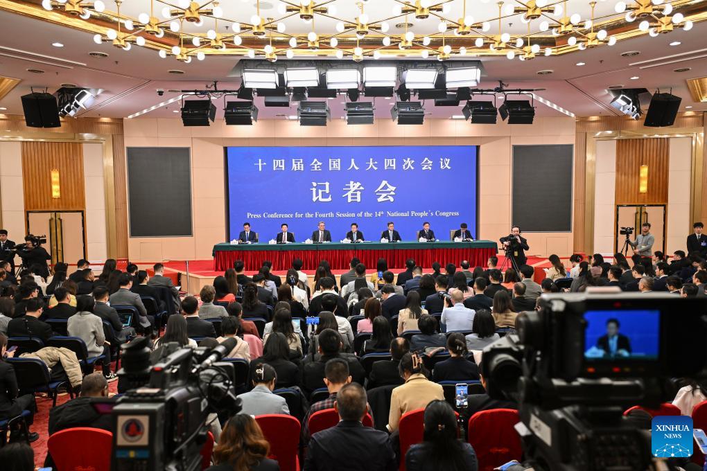A press conference for the fourth session of the 14th National People's Congress (NPC) on economy is held in Beijing, capital of China, March 6, 2026. (Xinhua/Cao Yiming)