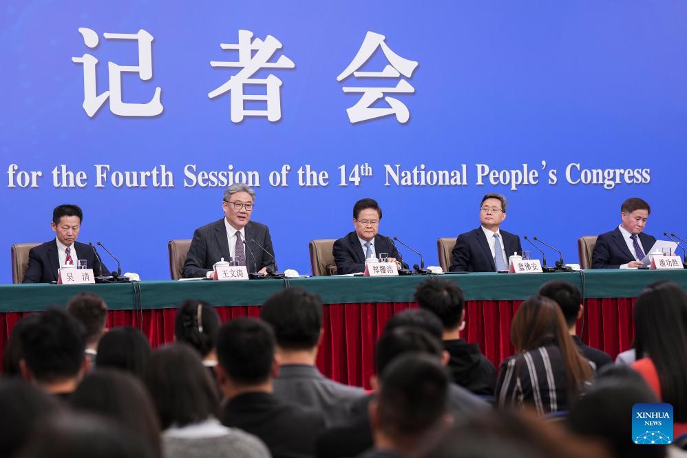 A press conference for the fourth session of the 14th National People's Congress (NPC) on economy is held in Beijing, capital of China, March 6, 2026. (Xinhua/Wang Xi)