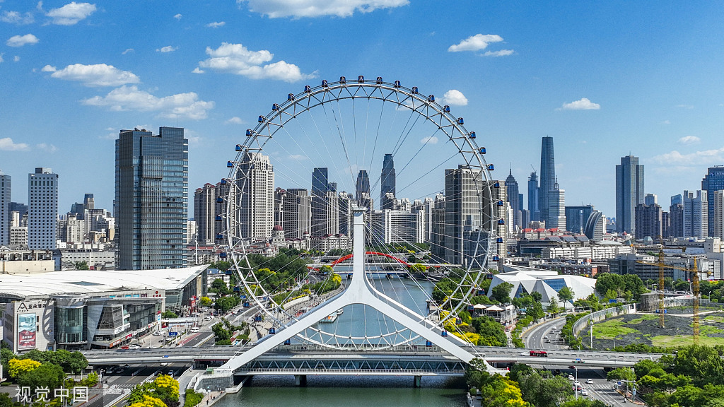 A giant Ferris wheel, called the "Tianjin Eye", is 110 meters in diameter and equipped with 48 capsules. (Photo: VCG)