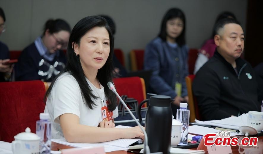 A member of the National Committee of the Chinese People's Political Consultative Conference (CPPCC) Yang Yang speaks at a meeting of the CPPCC National Committee members from sports sector at the fourth session of the 14th CPPCC National Committee in Beijing, capital of China, March 9, 2025. (Photo: China News Service/Tong Yu)