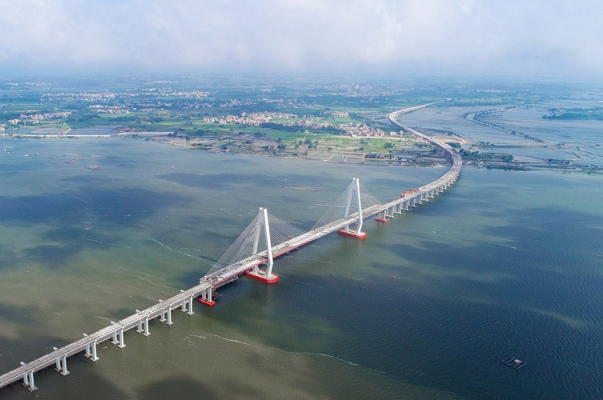 This aerial photo taken on May 25, 2023 shows the Luzhou grand bridge under construction in Zhanjiang City, south China's Guangdong Province. (File photo: Xinhua)