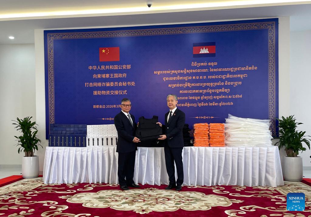 PHNOM PENH, March 16 (Xinhua) -- China on Monday provided materials to Cambodia's Commission for Combating Online Scams (CCOS), aiming at increasing the effectiveness of preventing and cracking down on cyber scams.