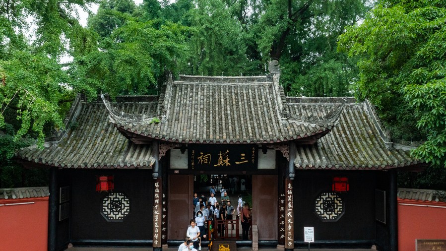 Aerial photo taken on June 22, 2022 shows a view of San Su Ci, the memorial temple and former residence of Su Xun and his two sons Su Shi and Su Zhe, three literary masters of the Northern Song Dynasty (960-1127), in Meishan, southwest China's Sichuan Province. (File photo: Xinhua)