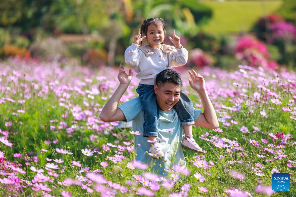 People enjoy spring views at a park in Kaiyuan of Honghe Hani and Yi Autonomous Prefecture, southwest China's Yunnan Province, on March 20, 2026. The spring equinox falls on March 20. This year, it also marks Longtaitou, also known as Dragon Head-raising Day, a significant occasion in the lunar calendar, celebrated by various activities across China. (Photo by Tao Jiaqi/Xinhua)