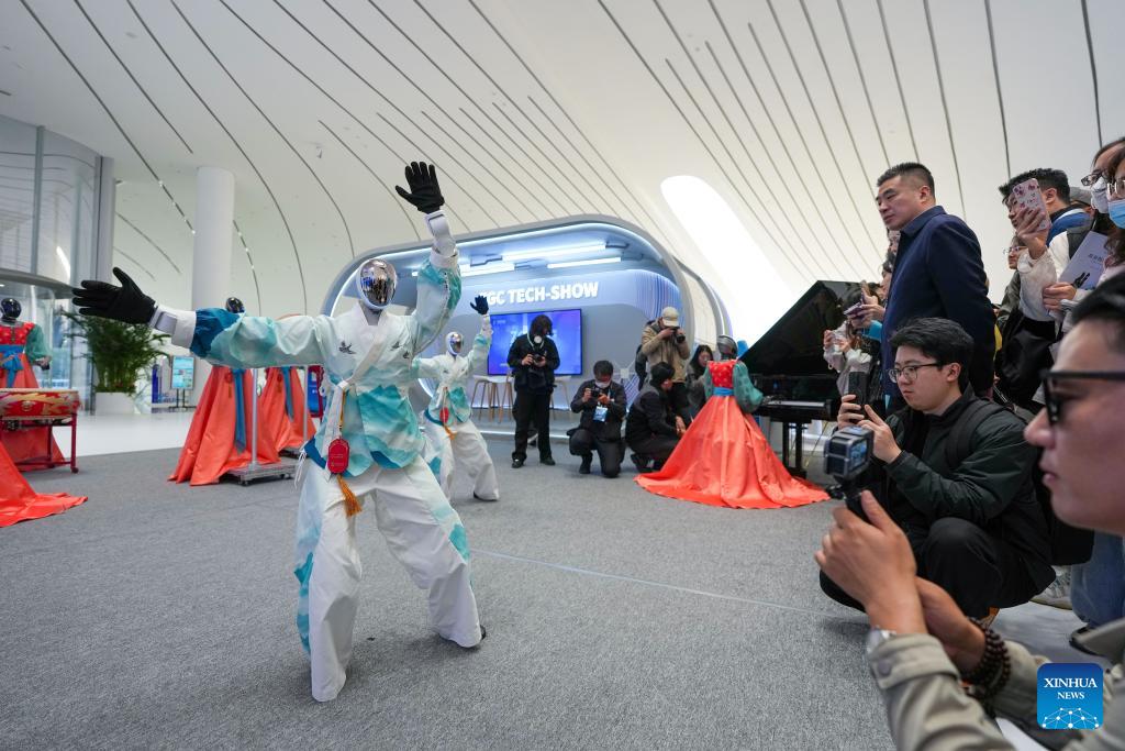 A robot stages a performance at the Zhongguancun International Innovation Center in Beijing, capital of China, March 24, 2026. Themed "Full Integration Between Technological and Industrial Innovation," this year's Zhongguancun Forum will be held in Beijing from March 25 to 29. More than 1,000 guests from over 100 countries and regions are expected to participate in the forum, which features more than 100 events. (Xinhua/Zhang Chenlin)