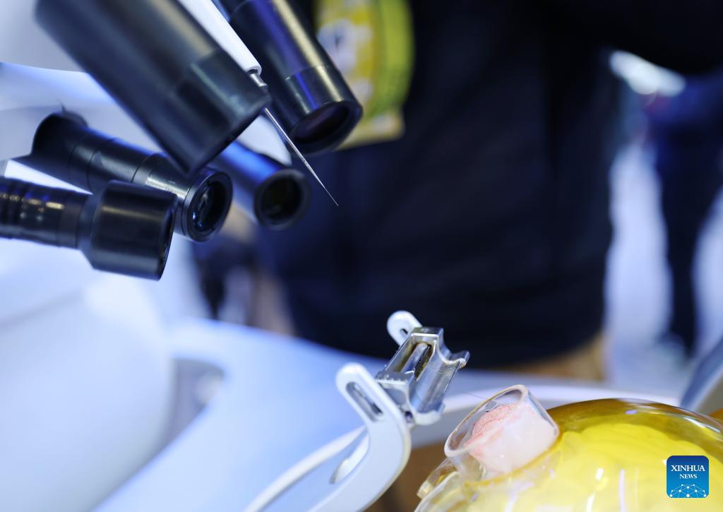 This photo taken on March 24, 2026 shows a high-throughput invasive brain-computer interface system at the Zhongguancun Exhibition Center in Beijing, capital of China. Themed "Full Integration Between Technological and Industrial Innovation," this year's Zhongguancun Forum will be held in Beijing from March 25 to 29. More than 1,000 guests from over 100 countries and regions are expected to participate in the forum, which features more than 100 events. (Xinhua/Zhang Chenlin)