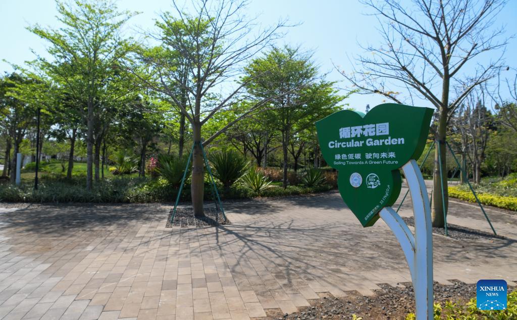 This photo taken on March 19, 2026 shows the Circular Garden in the Boao zero-carbon demonstration zone in Boao, south China's Hainan Province. Since the "Boao Near-Zero Carbon Demonstration Zone" was renamed the "Boao Zero-Carbon Demonstration Zone" in March 2025, the area has achieved notable progress in energy conservation and carbon reduction and has fully entered a stage of normalized zero-carbon operation. According to measured data, energy-related carbon dioxide emissions from buildings and municipal infrastructure in the zone dropped from 11,350.1 tonnes in 2019 to about 14.6 tonnes in 2025, a reduction of 99.9 percent. The zone generated 29 million kWh of green electricity a year, meeting its yearly power demand of about 19.4 million kWh, with the remaining 9.6 million kWh fed into the grid. (Xinhua/Yang Guanyu)