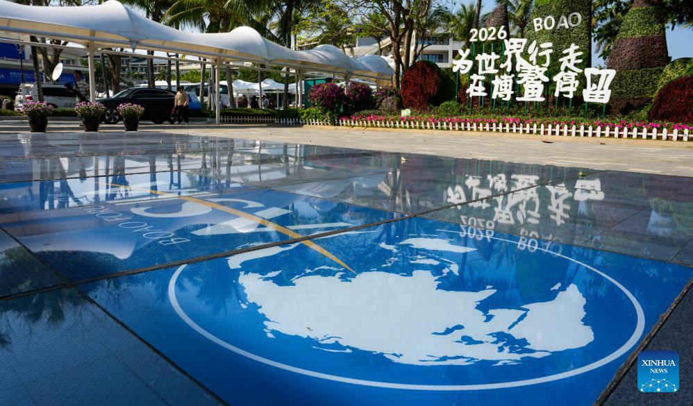 This photo taken on March 23, 2026 shows the outdoor photovoltaic floor tiles in the Boao zero-carbon demonstration zone in Boao, south China's Hainan Province. Since the "Boao Near-Zero Carbon Demonstration Zone" was renamed the "Boao Zero-Carbon Demonstration Zone" in March 2025, the area has achieved notable progress in energy conservation and carbon reduction and has fully entered a stage of normalized zero-carbon operation. According to measured data, energy-related carbon dioxide emissions from buildings and municipal infrastructure in the zone dropped from 11,350.1 tonnes in 2019 to about 14.6 tonnes in 2025, a reduction of 99.9 percent. The zone generated 29 million kWh of green electricity a year, meeting its yearly power demand of about 19.4 million kWh, with the remaining 9.6 million kWh fed into the grid. (Xinhua/Yang Guanyu)