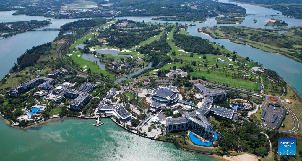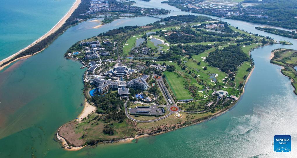An aerial drone photo taken on March 19, 2026 shows the Dongyu Island Hotel in the Boao zero-carbon demonstration zone in Boao, south China's Hainan Province. Since the "Boao Near-Zero Carbon Demonstration Zone" was renamed the "Boao Zero-Carbon Demonstration Zone" in March 2025, the area has achieved notable progress in energy conservation and carbon reduction and has fully entered a stage of normalized zero-carbon operation. According to measured data, energy-related carbon dioxide emissions from buildings and municipal infrastructure in the zone dropped from 11,350.1 tonnes in 2019 to about 14.6 tonnes in 2025, a reduction of 99.9 percent. The zone generated 29 million kWh of green electricity a year, meeting its yearly power demand of about 19.4 million kWh, with the remaining 9.6 million kWh fed into the grid. (Xinhua/Yang Guanyu)