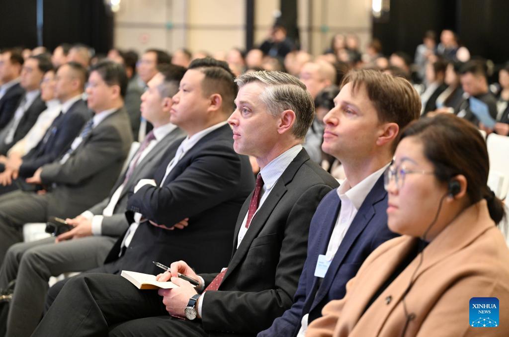 Participants attend a plenary meeting of the Tianjin 2026 Global Business Leaders Roundtable in north China's Tianjin, March 25, 2026. Themed with "Deep Integration of Technology and Industrial Innovation: Drivers, Mechanisms, and Pathways," the event kicked off on Wednesday. Nearly 300 participants from over 30 countries and regions exchanged views on various topics such as global value chain, innovation-driven development, artificial intelligence, green computing, port-industry-city integrated development, and modernization of traditional Chinese medicine. (Xinhua/Zhao Zishuo)