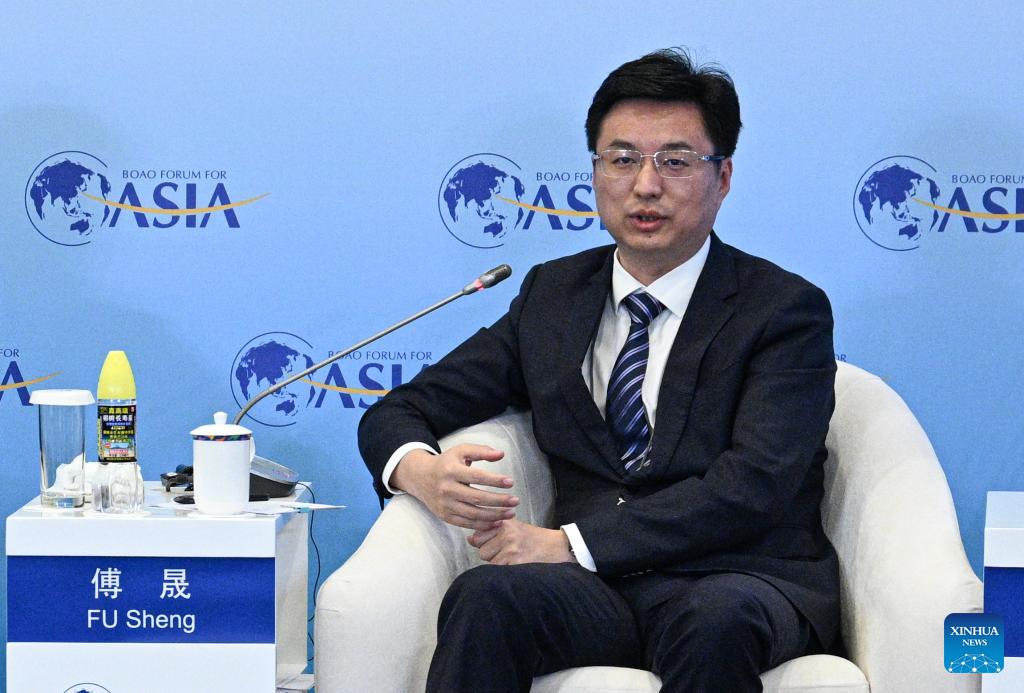 Fu Sheng, director of the Hainan Boao Lecheng International Medical Tourism Pilot Zone Administration Bureau, speaks at a panel discussion themed on "The Future of 'AI+Healthcare': Applications and Governance" during the Boao Forum for Asia (BFA) Annual Conference 2026 in Boao, south China's Hainan Province, March 26, 2026. (Photo: Xinhua)