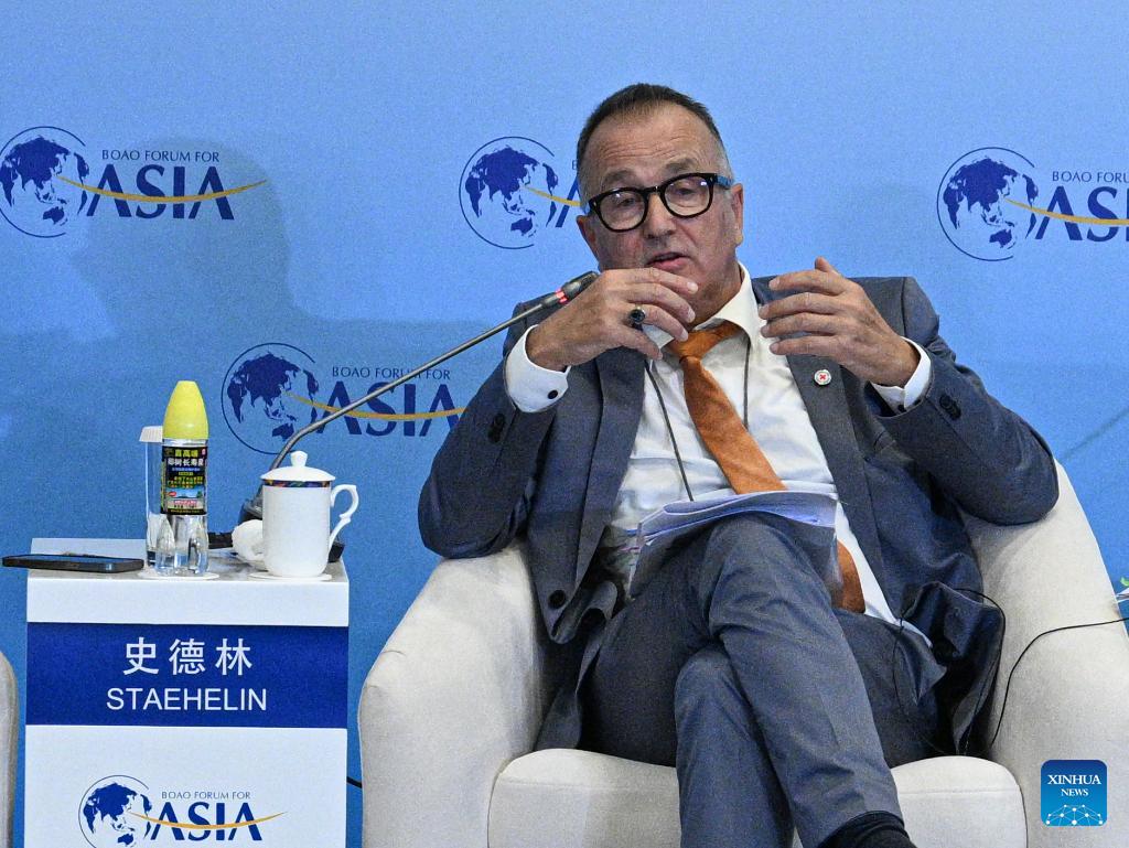 Balthasar Staehelin, personal envoy of the president to China for the International Committee of the Red Cross (ICRC), speaks at a panel discussion themed on "The Future of 'AI+Healthcare': Applications and Governance" during the Boao Forum for Asia (BFA) Annual Conference 2026 in Boao, south China's Hainan Province, March 26, 2026. (Photo: Xinhua)