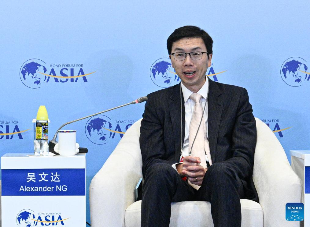 Alexander Ng, president of Tencent Healthcare and head of Tencent AI for Life Sciences Lab, speaks at a panel discussion themed on "The Future of 'AI+Healthcare': Applications and Governance" during the Boao Forum for Asia (BFA) Annual Conference 2026 in Boao, south China's Hainan Province, March 26, 2026. (Photo: Xinhua)