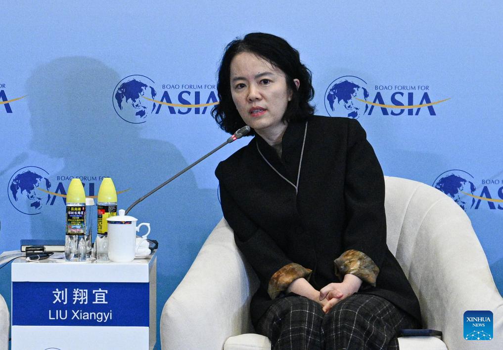 Liu Xiangyi, vice president and head of Intelligence Business Excellence and Digital (IBEX&Digital) of AstraZeneca China, speaks at a panel discussion themed on "The Future of 'AI+Healthcare': Applications and Governance" during the Boao Forum for Asia (BFA) Annual Conference 2026 in Boao, south China's Hainan Province, March 26, 2026. (Photo: Xinhua)