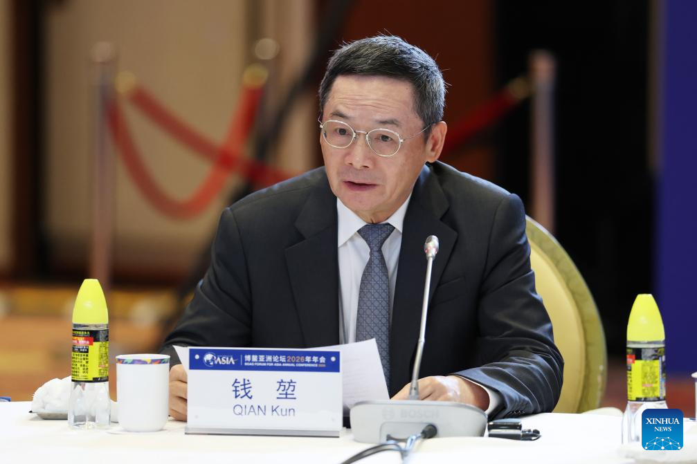 Qian Kun, senior vice president of Qualcomm, speaks at a panel discussion themed on "The AI Era: Ascending Dynamics for Industries" during the Boao Forum for Asia (BFA) Annual Conference 2026 in Boao, south China's Hainan Province, March 26, 2026. (Xinhua/Wang Yiliang)
