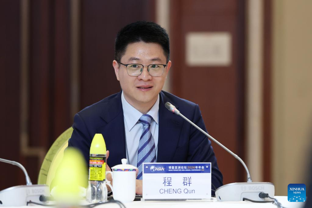 Cheng Qun, vice president of Yuanli Technologies, speaks at a panel discussion themed on "The AI Era: Ascending Dynamics for Industries" during the Boao Forum for Asia (BFA) Annual Conference 2026 in Boao, south China's Hainan Province, March 26, 2026. (Xinhua/Wang Yiliang)
