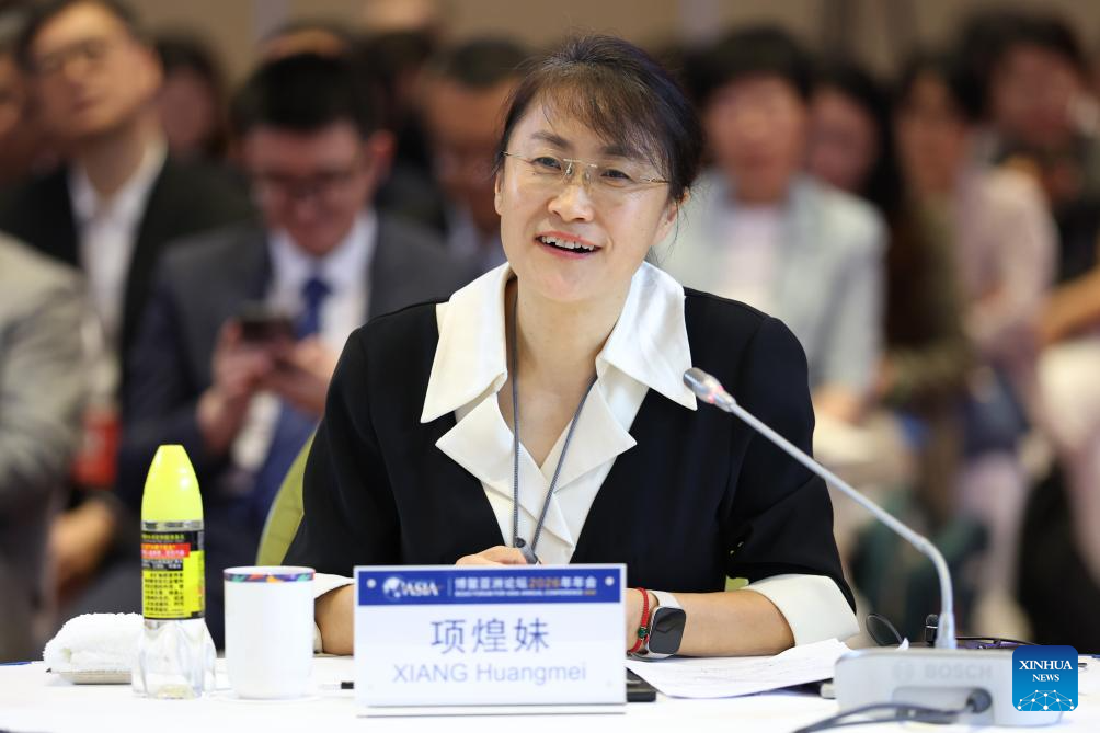 Xiang Huangmei, vice president of Alibaba Group, speaks at a panel discussion themed on "The AI Era: Ascending Dynamics for Industries" during the Boao Forum for Asia (BFA) Annual Conference 2026 in Boao, south China's Hainan Province, March 26, 2026. (Xinhua/Wang Yiliang)