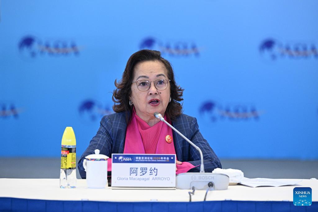 Former Philippine President Gloria Macapagal Arroyo speaks at a panel discussion themed on "Shaping the Future with Innovative Thinking: the Responsibility of Young Entrepreneurs" during the Boao Forum for Asia (BFA) Annual Conference 2026 in Boao, south China's Hainan Province, March 27, 2026. (Xinhua/Pu Xiaoxu)