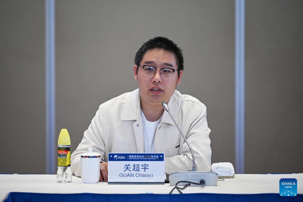 Guan Chaoyu, founder and CEO of QingMao Intelligent Technology (Beijing) Co., Ltd., speaks at a panel discussion themed on "Shaping the Future with Innovative Thinking: the Responsibility of Young Entrepreneurs" during the Boao Forum for Asia (BFA) Annual Conference 2026 in Boao, south China's Hainan Province, March 27, 2026. (Xinhua/Pu Xiaoxu)