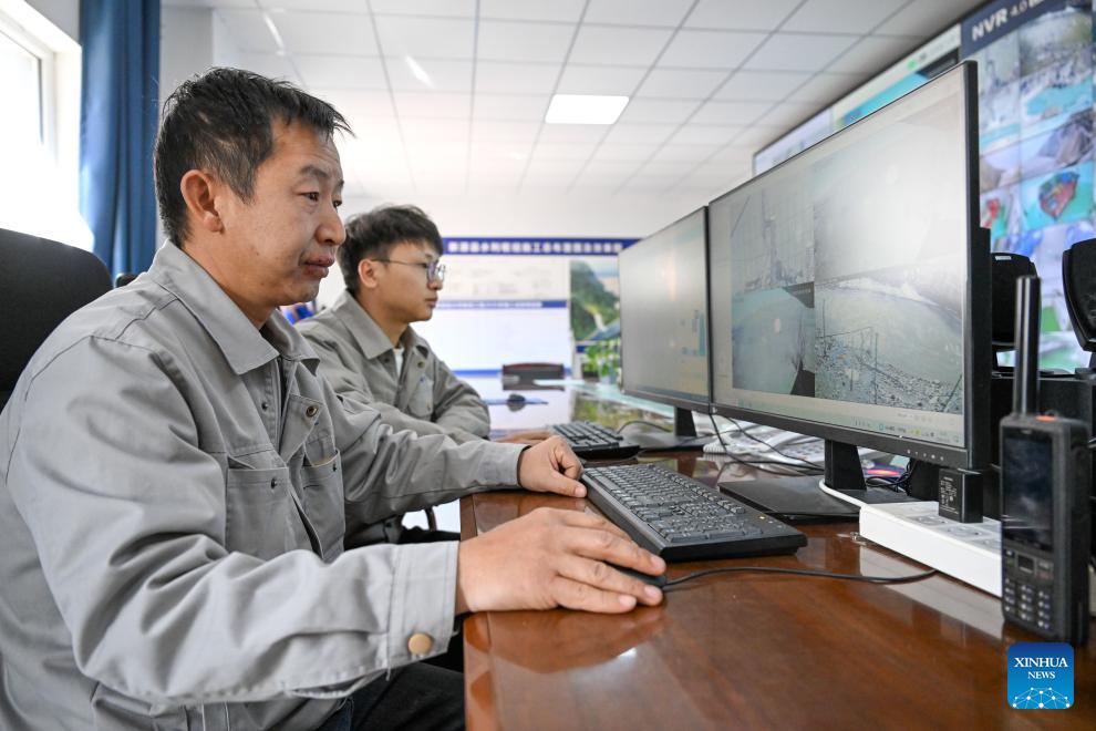 Staff members check monitoring feeds from various sites at the control room of a river hydropower complex in Xinyuan County of Ili Kazak Autonomous Prefecture, northwest China's Xinjiang Uygur Autonomous Region, March 27, 2026. Recently, in response to the potential flood risks caused by snowmelt in the Tianshan and Altay Mountains, local authorities in Ili have conducted thorough hazard identification and rectification, increased the frequency of meteorological and hydrological monitoring, stockpiled sufficient flood control supplies, and established emergency rescue teams to prevent flood-related disasters during the flood season. (Xinhua/Ding Lei)