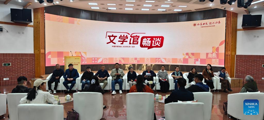 Writers share their experiences during an event hosted by the China Writers Association at the National Museum of Modern Chinese Literature in Beijing, capital of China, March 25, 2026. (Xinhua/Yu Junjie)