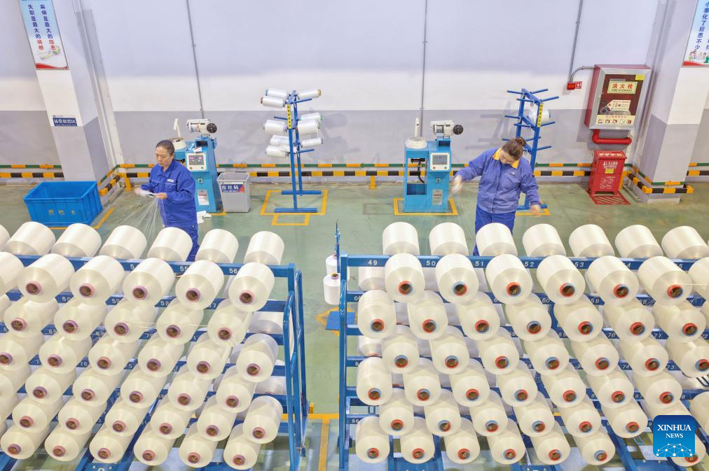 Workers work at an intelligent workshop in Tongzhou District of Nantong, east China's Jiangsu Province, March 31, 2026. In recent years, Nantong has scaled up efforts to improve the water conservancy system, coupled with its green development endeavors in river basins and seaside areas. (Photo by Xu Congjun/Xinhua)