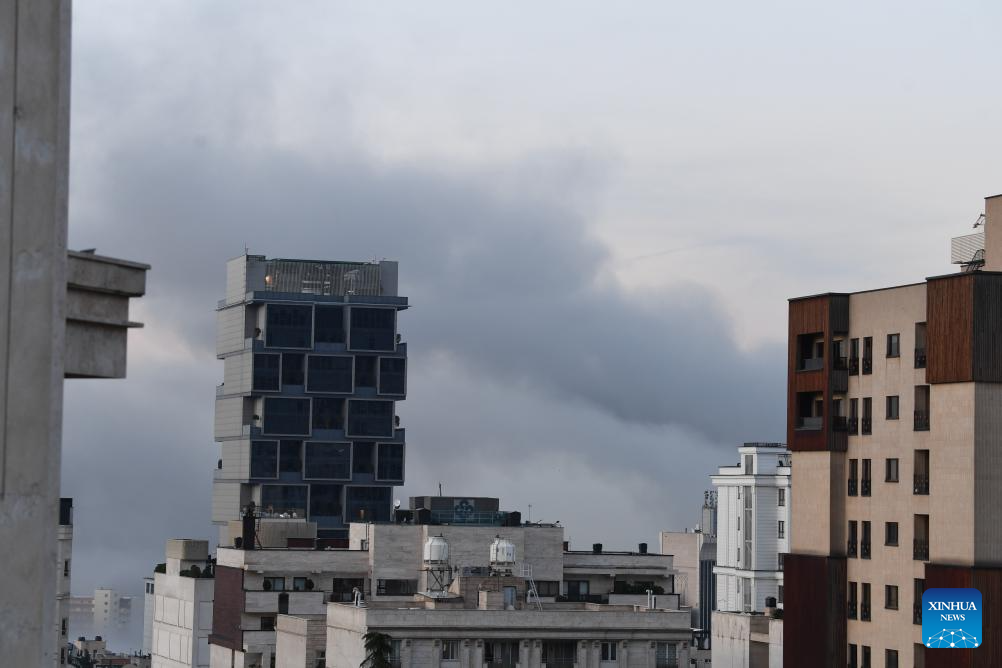 Smoke billows after explosions heard in downtown Tehran, Iran, April 1, 2026. (Photo: Xinhua)