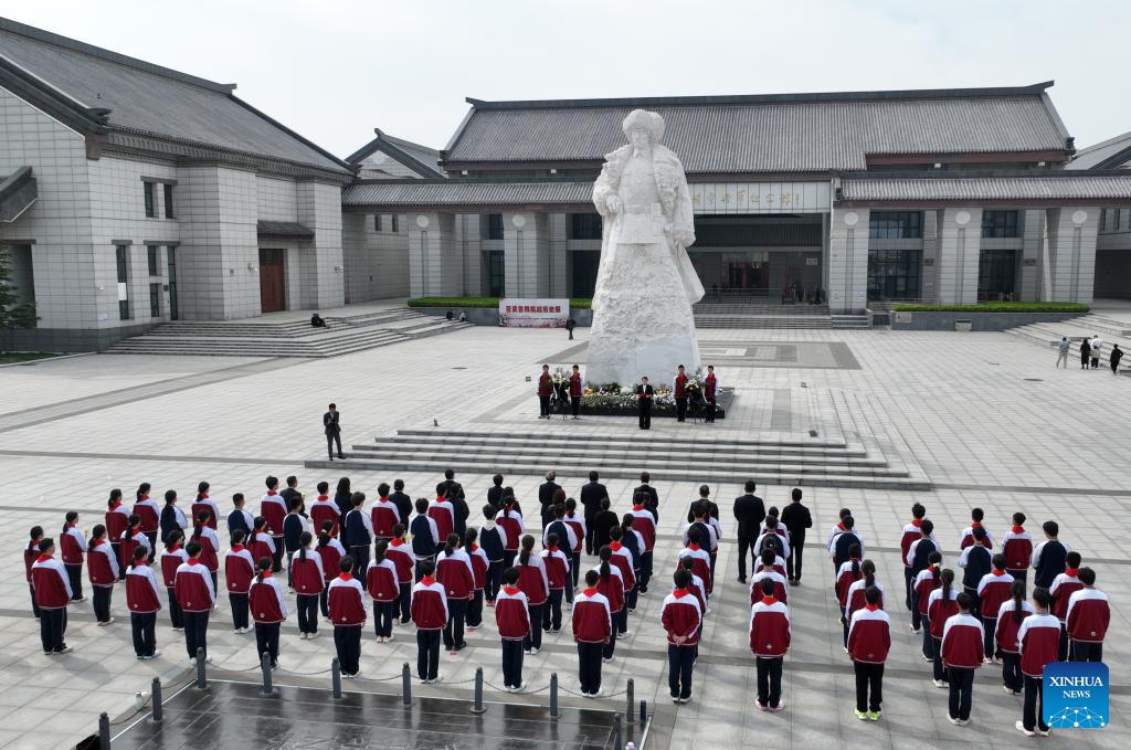People pay tribute at a martyr's memorial hall in Zhumadian City, central China's Henan Province, April 2, 2026. People across the country attended various activities to pay tribute to martyrs ahead of the Qingming Festival, or Tomb-Sweeping Day, which falls on April 5 this year. (Photo by Gong Huajing/Xinhua)