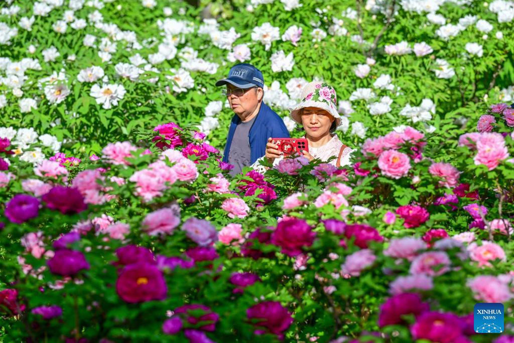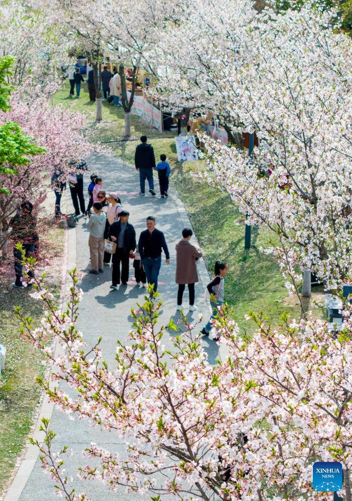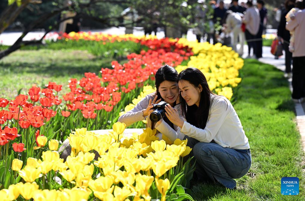 Tourists enjoy their leisure time at a botanical garden during the Qingming Festival holiday in Shijiazhuang, north China's Hebei Province, April 4, 2026. (Photo by Chen Qibao/Xinhua)