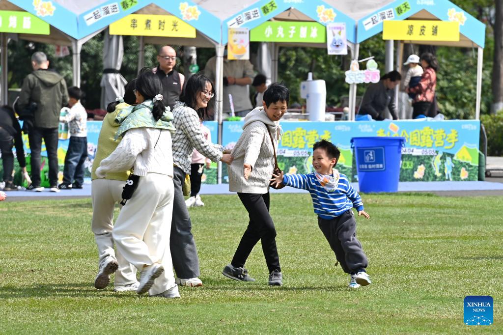 People enjoy their leisure time at a camping site during the Qingming Festival holiday in Longyang Town of Tengzhou City, east China's Shandong Province, April 4, 2026. (Xinhua/Zhu Zheng)